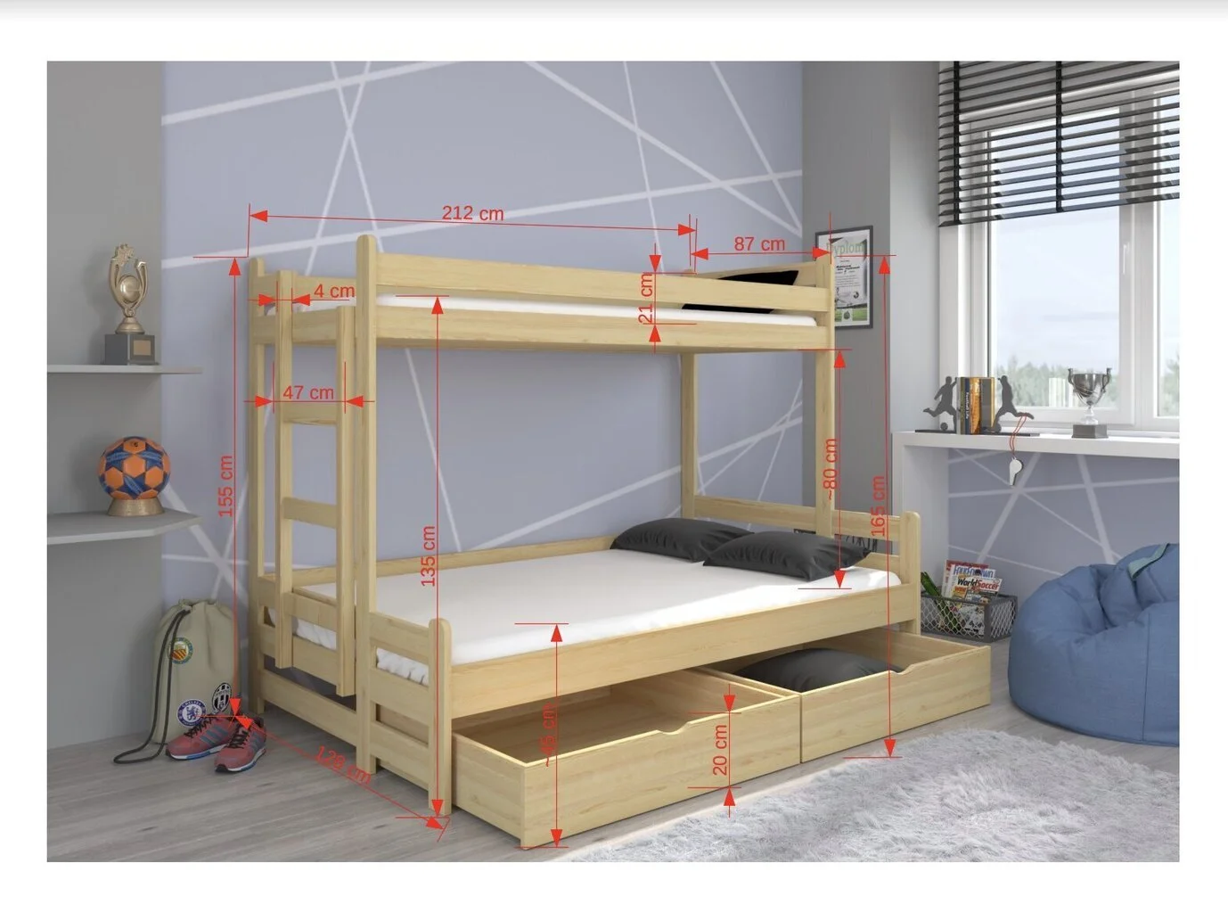Levyn yläkerros peitetään usein erityisellä kalvolla, joka varmistaa huonekalun lujuuden. Viimeisimpien tuotantoteknologioiden avulla nämä laatat voivat olla kosteudenkestäviä, minkä vuoksi nämä materiaalit eroavat monipuolisuudestaan ja sopivat mihin tahansa huoneeseen. Benito-kerrossänky lapsille, 212 x 80 cm + patjat löytää varmasti paikan kodistasi!