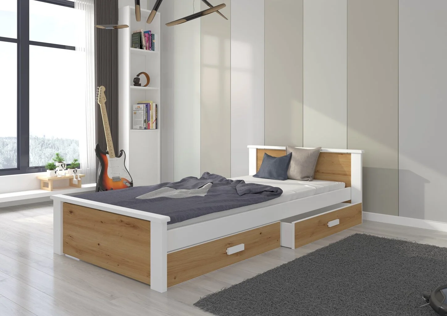 • Patjatuet jäykistä säleistä, 2 laatikkoa pyörillä.