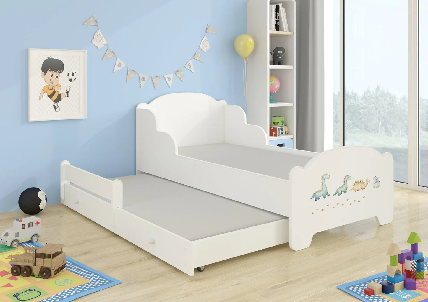 Levyn yläkerros peitetään usein erityisellä kalvolla, joka varmistaa huonekalun lujuuden. Viimeisimpien tuotantoteknologioiden avulla nämä laatat voivat olla kosteudenkestäviä, minkä vuoksi nämä materiaalit eroavat monipuolisuudestaan ja sopivat mihin tahansa huoneeseen. Vaikiška lova Amadis II Dinosaurs 160×80 cm su čiužiniu löytää varmasti paikan kodistasi!