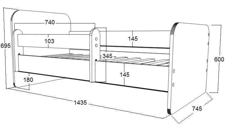- Sängyn mitat: pituus – 144 cm, leveys – 74 cm, korkeus – 69 cm.