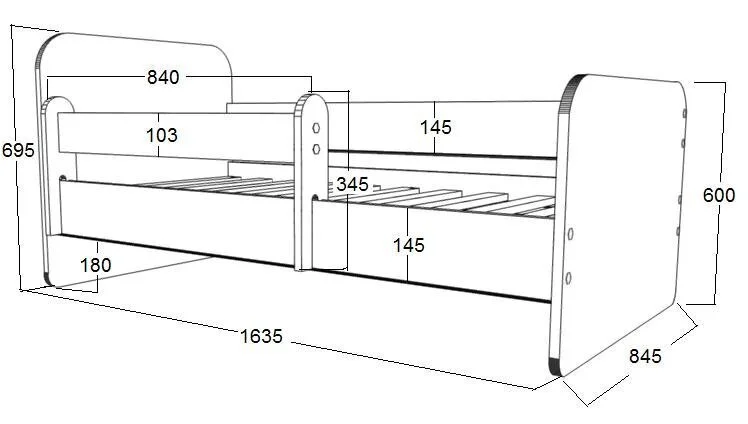 - Sängyn reunat on pyöristetty, jotta lapsi ei loukkaantuisi.