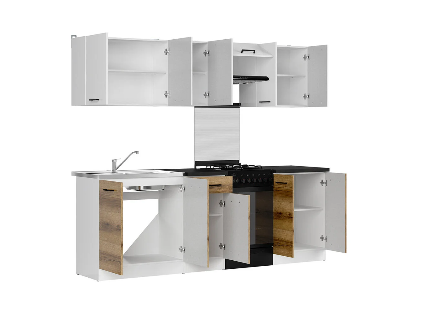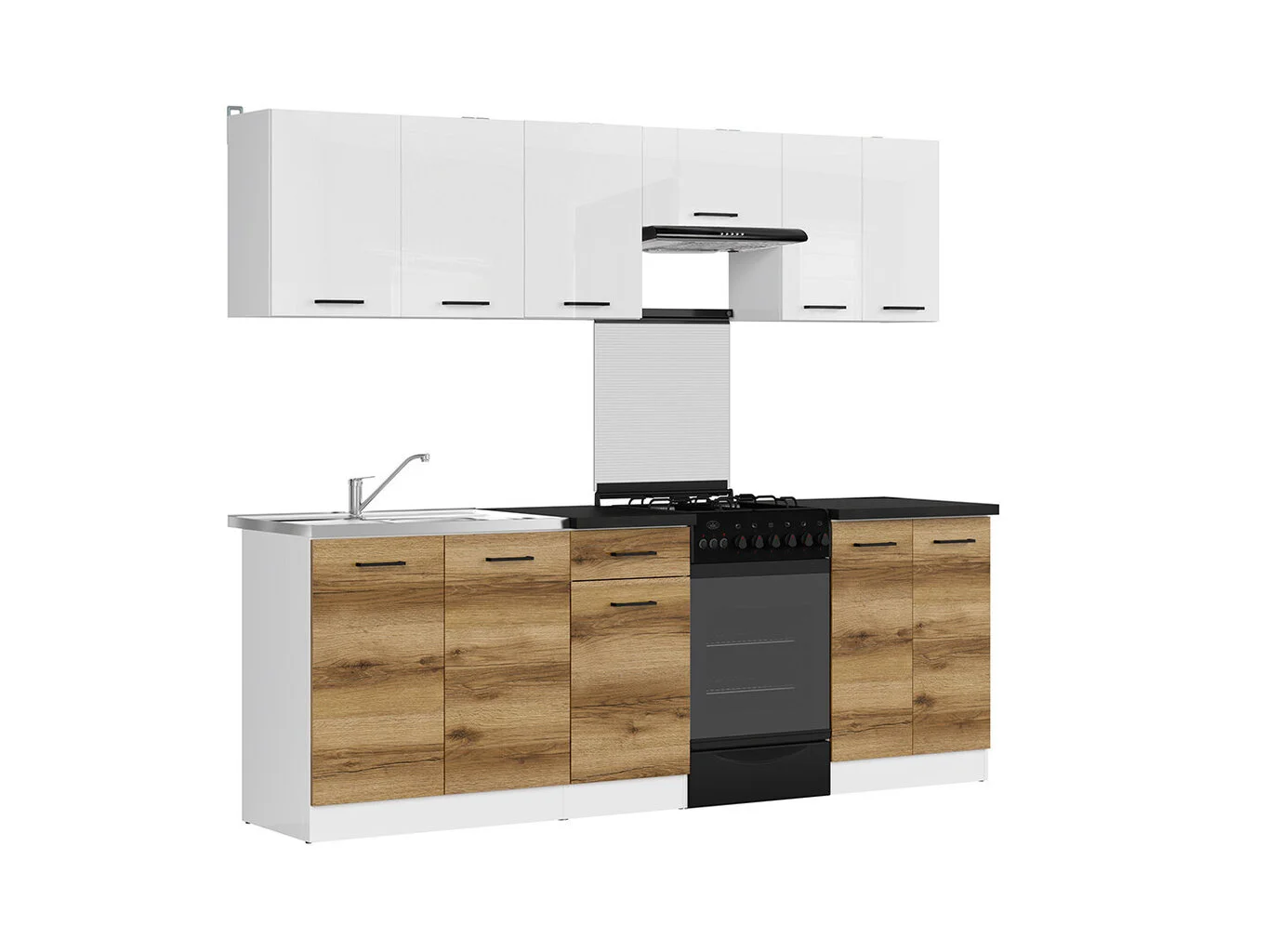 Levyn yläkerros peitetään usein erityisellä kalvolla, joka varmistaa huonekalun lujuuden. Viimeisimpien tuotantoteknologioiden avulla nämä laatat voivat olla kosteudenkestäviä, minkä vuoksi nämä materiaalit eroavat monipuolisuudestaan ja sopivat mihin tahansa huoneeseen. Keittiökalusteet BRW Junona Line 230, vaaleanruskea. löytää varmasti paikan kodistasi!