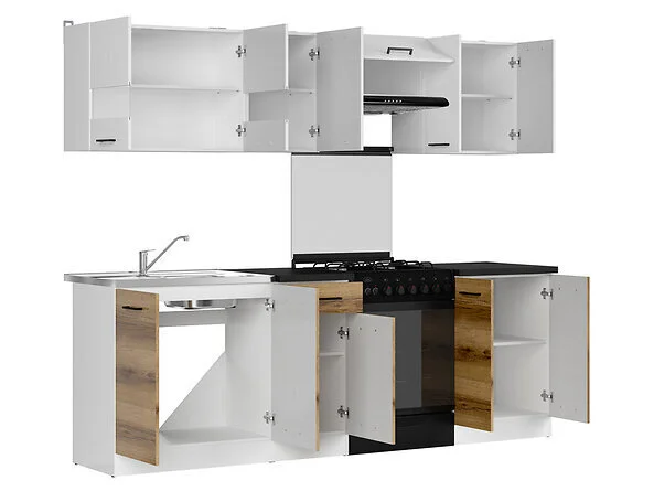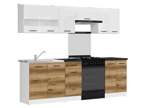Levyn yläkerros peitetään usein erityisellä kalvolla, joka varmistaa huonekalun lujuuden. Viimeisimpien tuotantoteknologioiden avulla nämä laatat voivat olla kosteudenkestäviä, minkä vuoksi nämä materiaalit eroavat monipuolisuudestaan ja sopivat mihin tahansa huoneeseen. BRW Junona Line 240 Keittiökalusteet, valkoinen/tummanruskea löytää varmasti paikan kodistasi!