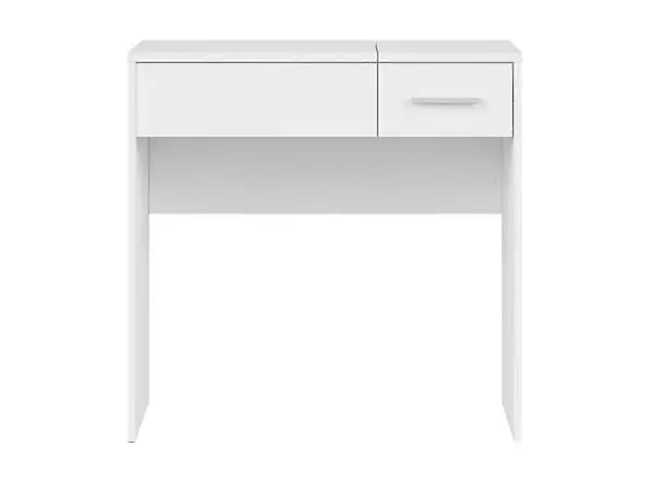 Pöytä pn minimalistisesti muotoiltu ja siinä on yksi laatikko ja pöytälevyn alla oleva tila, mihin mahtuu kaikki korut, kosmetiikka ja asusteet. Lisäksi kampauspöytää voidaan käyttää työpöytänä.