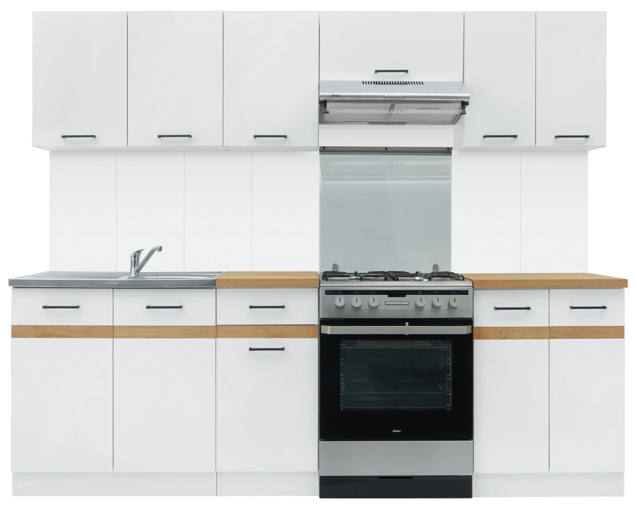 Levyn yläkerros peitetään usein erityisellä kalvolla, joka varmistaa huonekalun lujuuden. Viimeisimpien tuotantoteknologioiden avulla nämä laatat voivat olla kosteudenkestäviä, minkä vuoksi nämä materiaalit eroavat monipuolisuudestaan ja sopivat mihin tahansa huoneeseen. Keittiökaappisarja Junona Line 240, valkoinen/ruskea löytää varmasti paikan kodistasi!