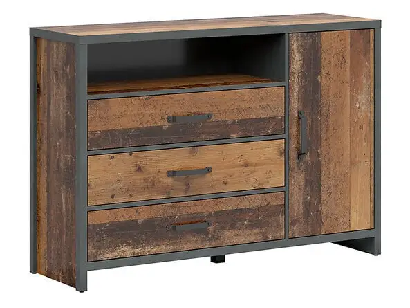Levyn yläkerros peitetään usein erityisellä kalvolla, joka varmistaa huonekalun lujuuden. Viimeisimpien tuotantoteknologioiden avulla nämä laatat voivat olla kosteudenkestäviä, minkä vuoksi nämä materiaalit eroavat monipuolisuudestaan ja sopivat mihin tahansa huoneeseen. Lipasto BRW Weston 1D3S, ruskea löytää varmasti paikan kodistasi!
