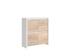 Levyn yläkerros peitetään usein erityisellä kalvolla, joka varmistaa huonekalun lujuuden. Viimeisimpien tuotantoteknologioiden avulla nämä laatat voivat olla kosteudenkestäviä, minkä vuoksi nämä materiaalit eroavat monipuolisuudestaan ja sopivat mihin tahansa huoneeseen. Neliovinen kaappi Caspian, valkoinen/tammi löytää varmasti paikan kodistasi!
