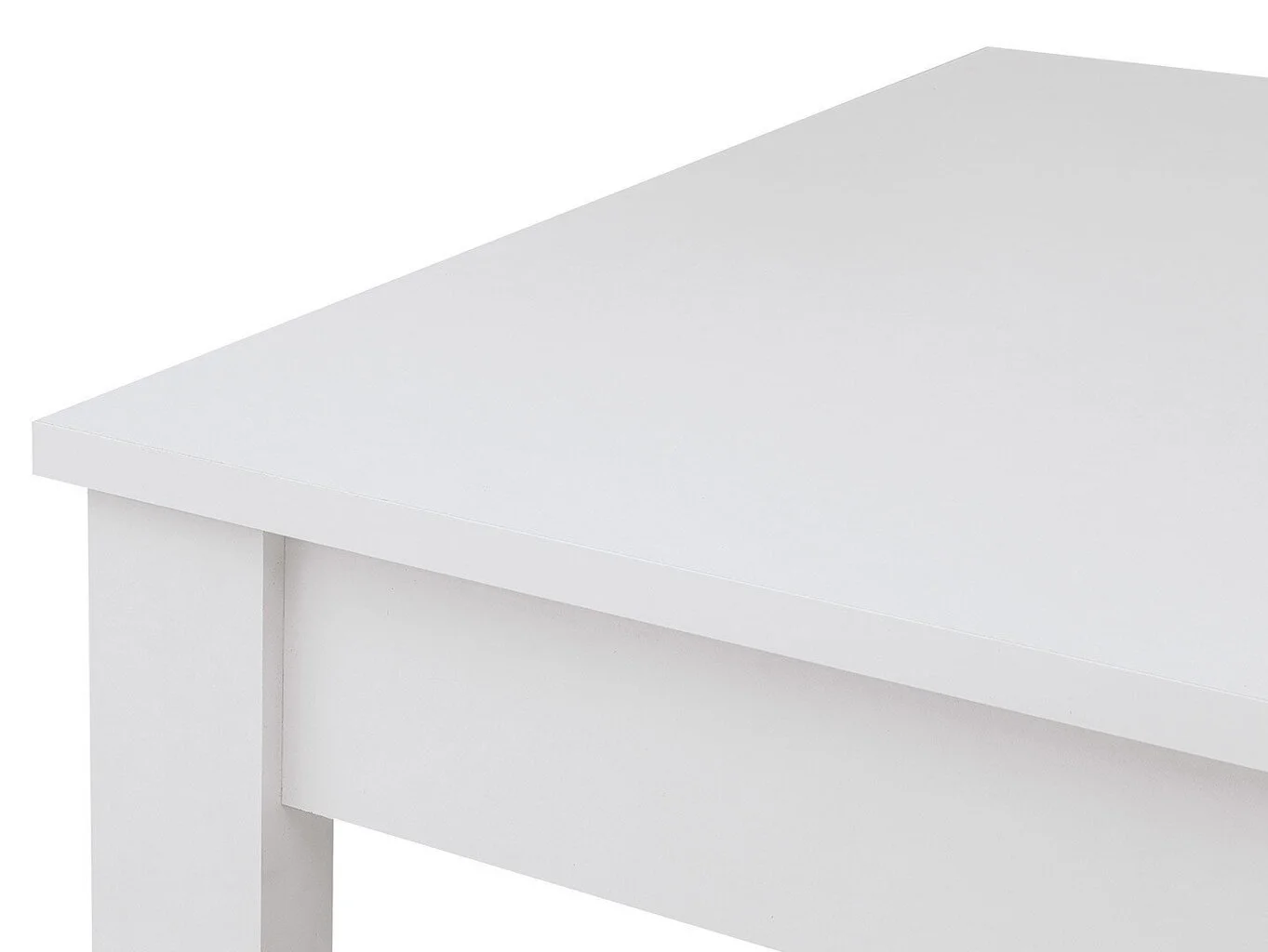 Levyn yläkerros peitetään usein erityisellä kalvolla, joka varmistaa huonekalun lujuuden. Viimeisimpien tuotantoteknologioiden avulla nämä laatat voivat olla kosteudenkestäviä, minkä vuoksi nämä materiaalit eroavat monipuolisuudestaan ja sopivat mihin tahansa huoneeseen. Pöytä Bryk Mini, valkoinen löytää varmasti paikan kodistasi!