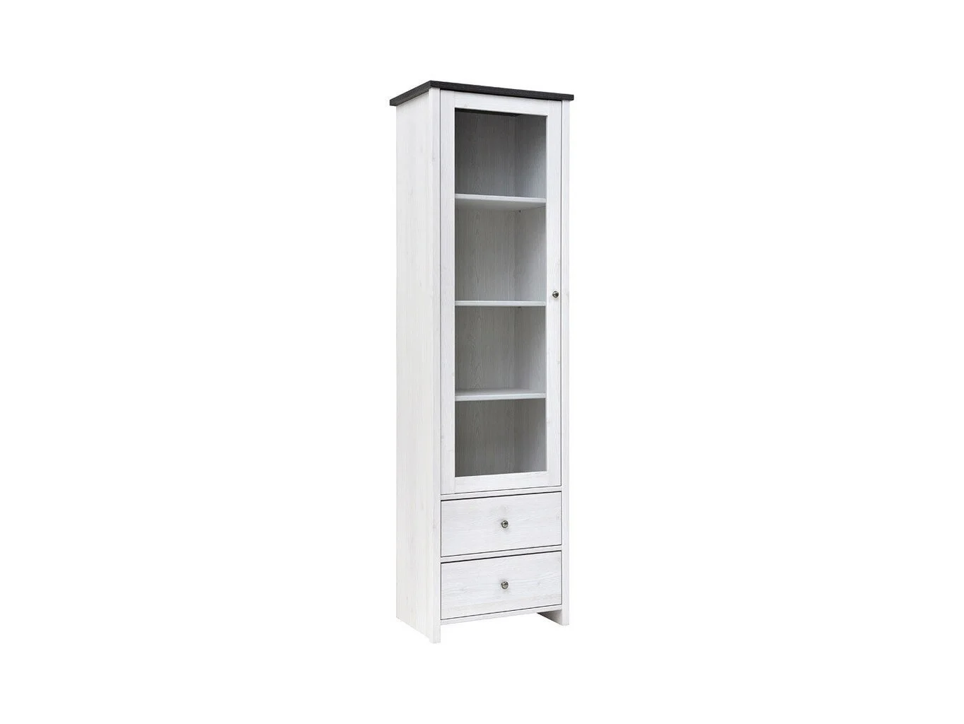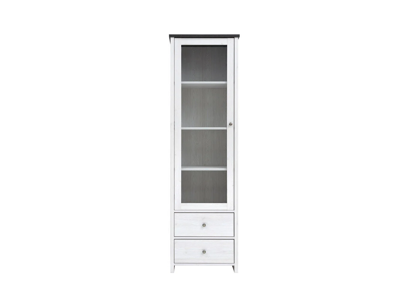 - 2-laatikollinen vitriinikaappi, jossa on 1 ovi ja 4 hyllyä;
