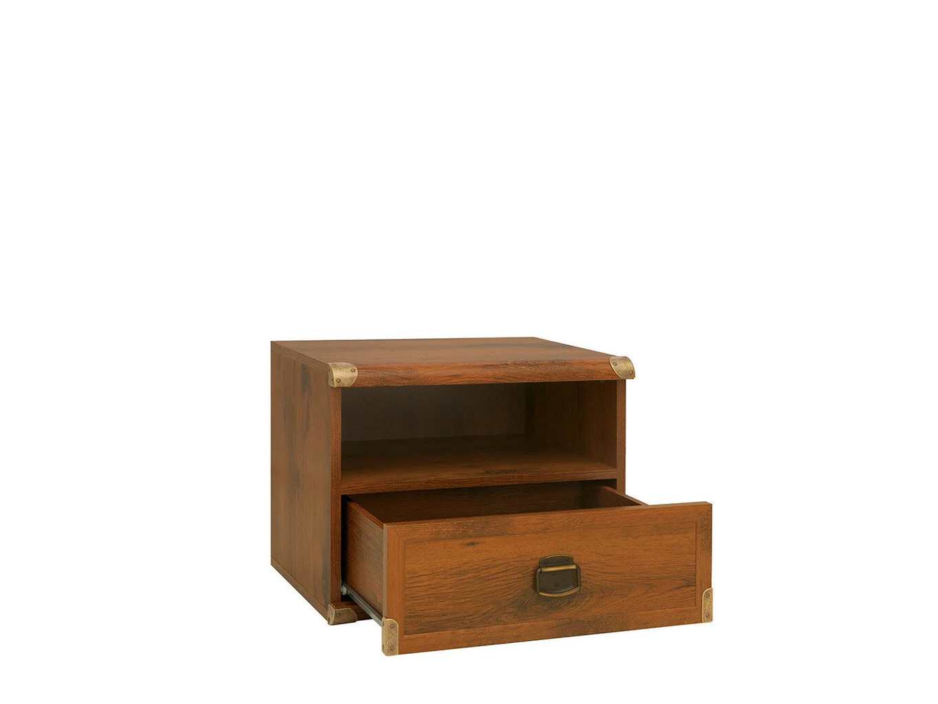 Kun sisustat makuuhuoneen, huolehdi makuuhuoneen suunnittelun lisäksi myös arkielämän mukavuudesta. Aseta sängyn viereen Indiana-yöpöytä, jotta tavarat pysyvät järjestyksessä. Kaapissa on avohylly ja ulosvedettävä laatikko kosmetiikan ja muiden pienempien tavaroiden säilyttämistä varten. Pieni mutta erittäin käytännöllinen kaappi, johon voit laittaa vesilasin, teekupin, yöpöytälampun tai lempikirjasi. Kun kaikki on käden ulottuvilla, voit tuntea olosi mukavaksi makuuhuoneessa.