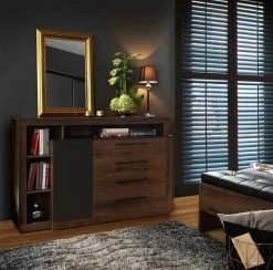 Levyn yläkerros peitetään usein erityisellä kalvolla, joka varmistaa huonekalun lujuuden. Viimeisimpien tuotantoteknologioiden avulla nämä laatat voivat olla kosteudenkestäviä, minkä vuoksi nämä materiaalit eroavat monipuolisuudestaan ja sopivat mihin tahansa huoneeseen. Forte Fossano kaappi IRQS12313B, ruskea löytää varmasti paikan kodistasi!
