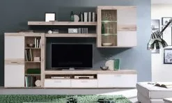 Kaikki nämä modernien huonekalujen ominaisuudet vahvistavat sen tosiasian, että tämän tyylin tuotteet ovat yksinkertaisia ja samalla erittäin yleisiä. Joten ne on helppo sijoittaa kaikenkokoisiin huoneisiin. Osio Zumba, valkoinen / tammi pitää niistä, jotka haluavat luoda minimalistisen ja tilavan tilan, jossa on kunnollinen ja raikas luonto.
