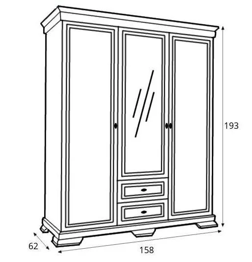- Mitat: korkeus – 193 cm, leveys – 158 cm, syvyys – 62 cm