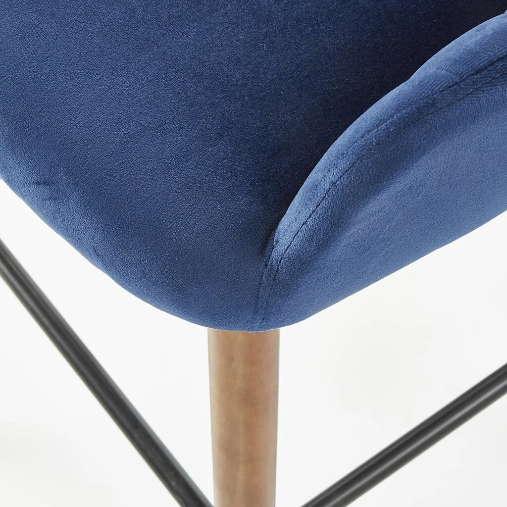 Moderni ja tyylikäs baarijakkara mukavalla istuinalueella ja mukavalla selkänojalla, päällystetty pehmeällä ja herkällä velourilla, joka sopii täydellisesti tammijalkojen ja mustien jalkojen kanssa – tästä baarituolista tulee tyylikäs ja kodikas aksentti kotiisi!