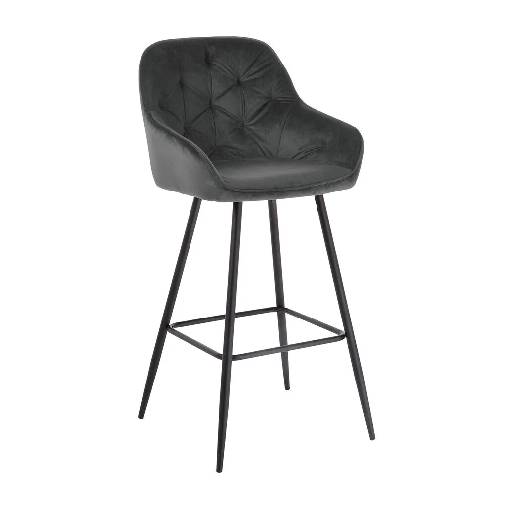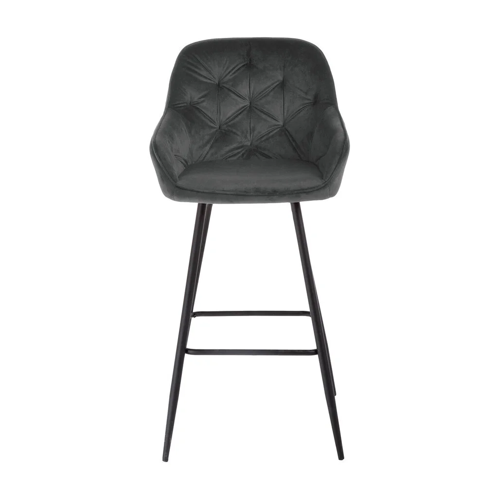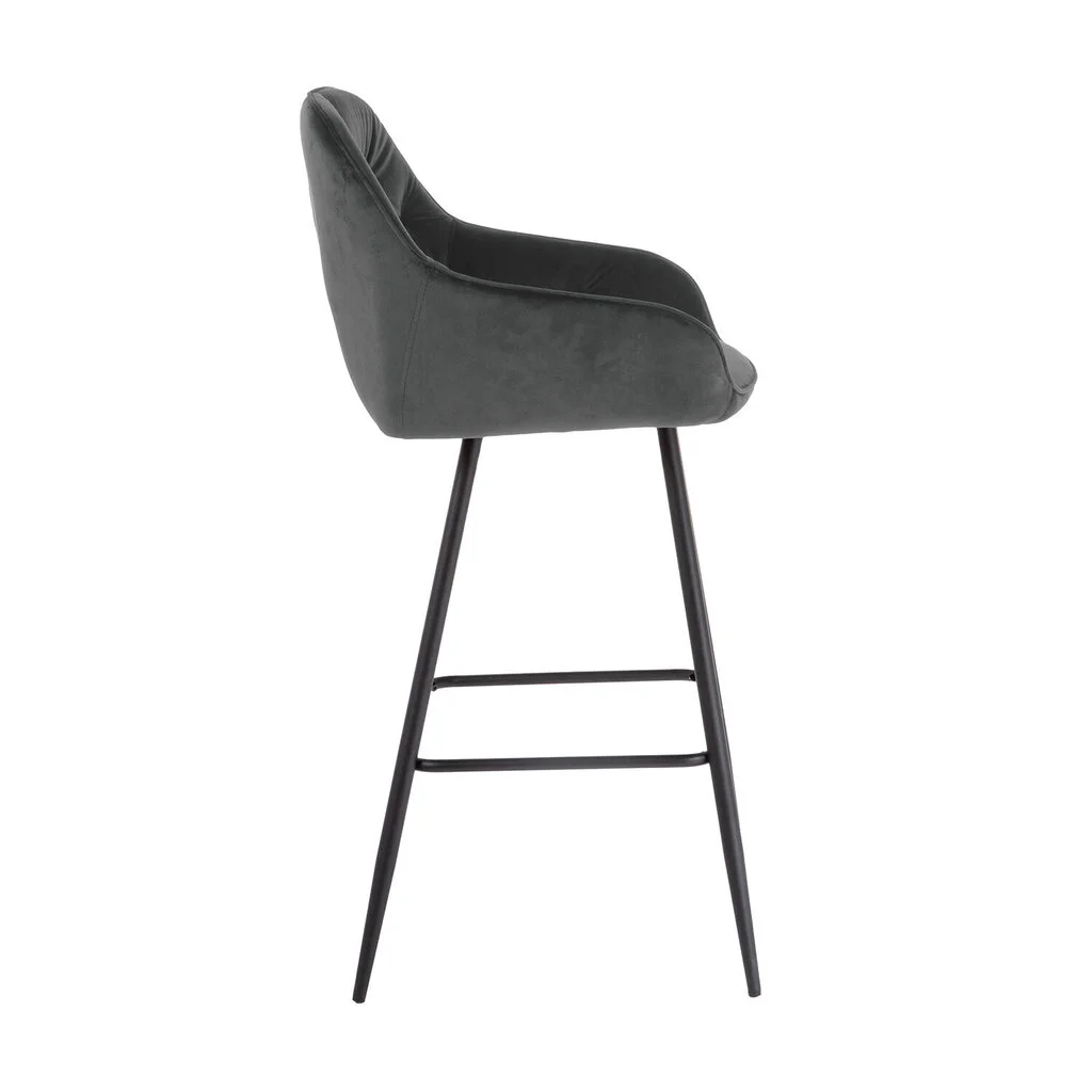 Baarituoli BRITA, harmaa sametti. Mukavan muotoinen taivutettu vaneri-istuin on kevyesti verhoiltu samettikankaalla. Kannen materiaali: 100% polyesteriä, 260g/m². Martindale 25 000. Tuolin jalat ja runko on valmistettu metallista ja viimeistelty mustalla jauhemaalilla. Tuolin kokonaismitat ovat 53x55xH109cm, istuimen leveys 38cm, istuimen syvyys 43cm, istuinkorkeus 75cm. Selkänojan korkeus 37cm, jalkatuen korkeus 29cm. Painoraja 120kg.
