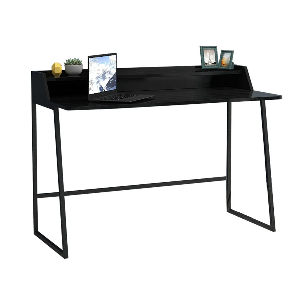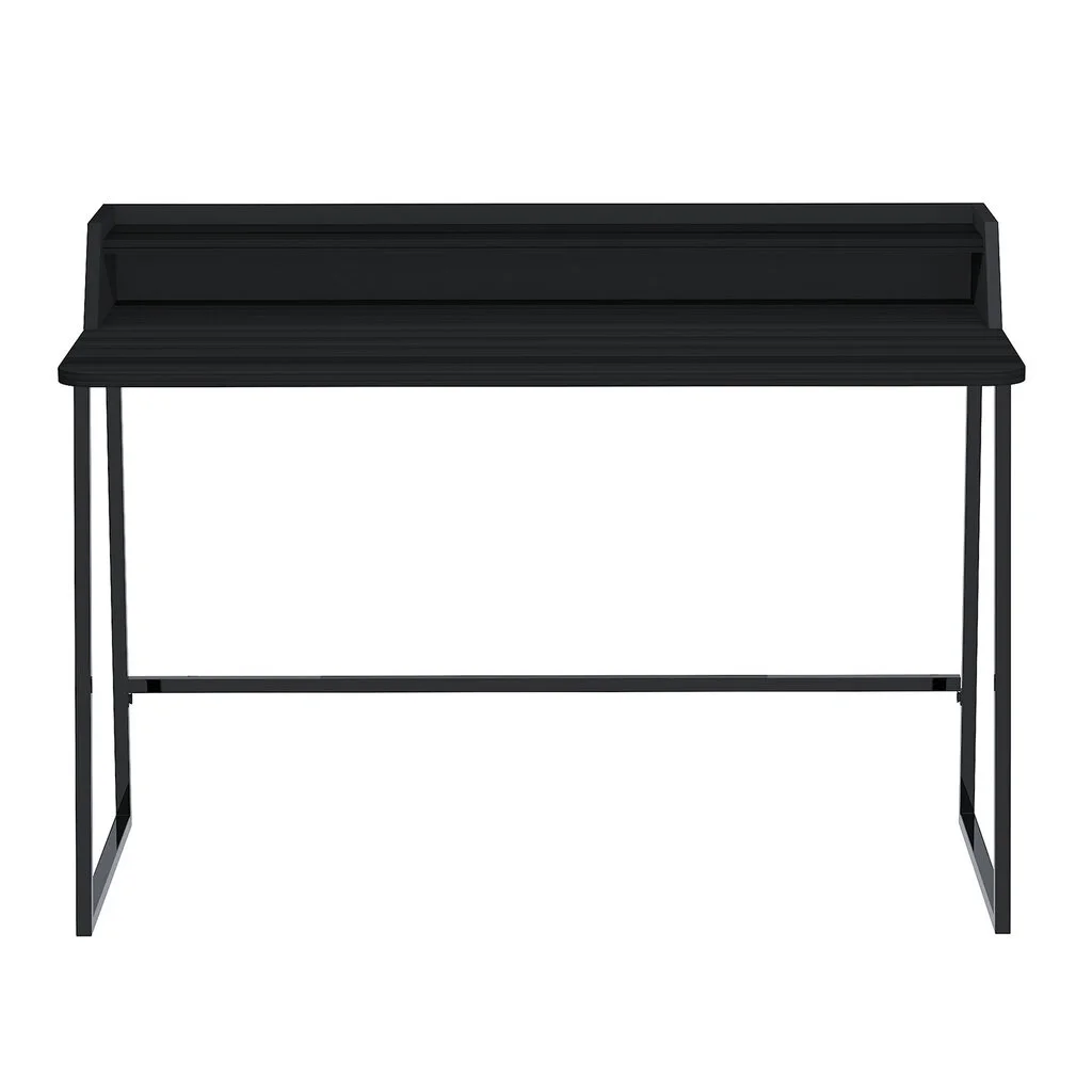 Työpöytä HELENA 120x60xH88cm, musta tammi. Työpöytä on välttämätön lisä jokaiseen kotiin, jonka avulla voit käyttää tietokonetta kätevämmin tai luoda käytännöllisen kotitoimistotilan. Pöytälevy on valmistettu 18mm MDF-levystä luonnon tammiviilulla. Viimeistely: musta petsi ja lakka. Metallirunko on pulverimaalattu. Väri on musta. Tuotteen mitat ovat 120x60xH88cm.