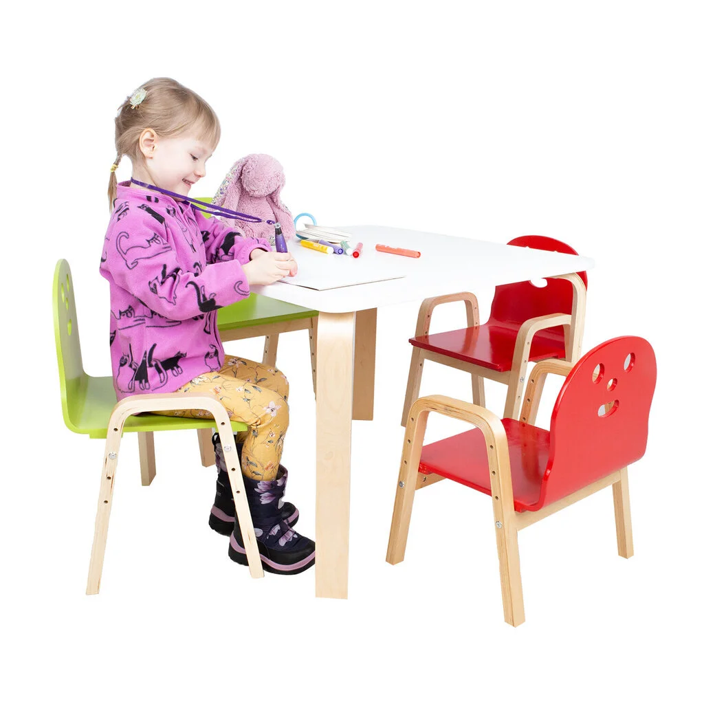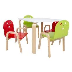 Pienet puutteet lunastetaan huonekaluihin erittäin edulliseen hintaan – jos haluat luoda tyylikkään kodin ilman suuria investointeja, Lasten setti HAPPY pöytä ja 2 tuolia, valkoinen/punainen/vihreä on yksi parhaista vaihtoehdoista.