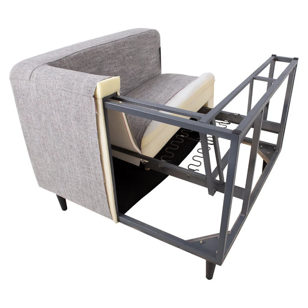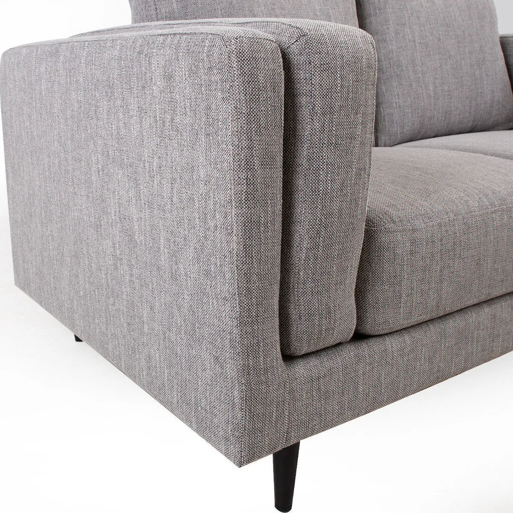 Sohva LISBON 165x92x89cm, harmaa. Päällystemateriaali: kangas 88 % polyesteri, 12 % viskoosi, 20 000 Martindale. Runko: sinkitty teräsrunko. Kehyksen kaikki sivut on peitetty vaahtokerroksella. Jousitus: korkealaatuiset 9G siksak-jouset. Verhoilu: Ensimmäinen kerros istuimen suojamateriaalin alla on paksua ja pehmeää polyesterikuitua, toinen kerros sen alla on pehmeää polyuretaanivaahtoa, jotka yhdessä antavat istuimelle mukavuuden ja kauniin muodon. Jousituksen kolmas kerros on erittäin tiheä, korkealaatuinen polyuretaanivaahto, joka tukee istuinta oikein. Selkänojatyyny on täynnä kanavoitua paksua polyesterikuitua. Teräksiset jalat puujäljitelmällä. Verrattuna perinteisesti valmistettuihin puisiin runkoverhoiltuihin huonekaluihin, metallirunkoiset verhoillut huonekalut ovat huomattavasti kestävämpiä ja kevyempiä.