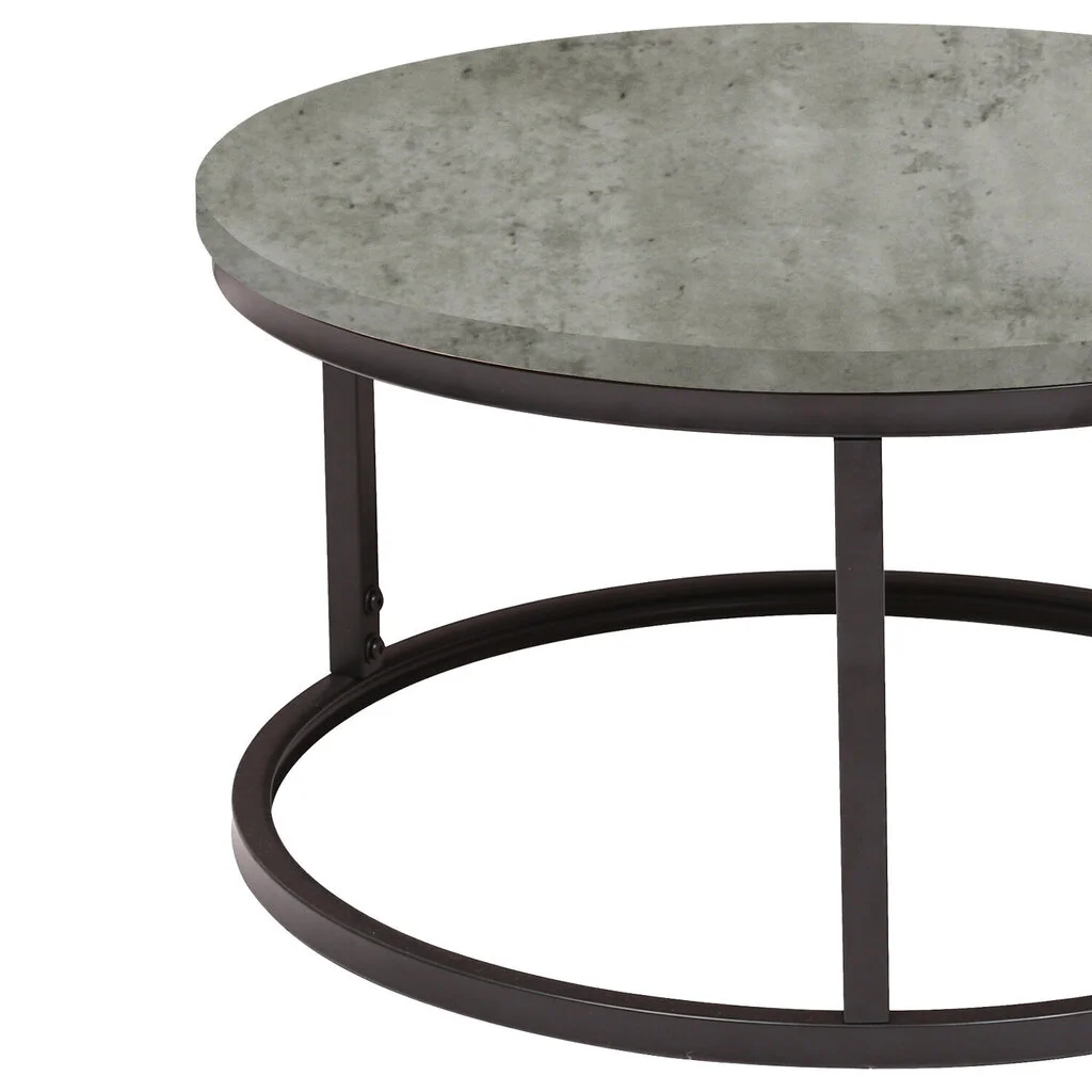 Sohvapöytä BRITE D60xH32cm, harmaa. Pöytälevyn sisustus näyttää betonilta. Se on valmistettu 18 mm: n MDF-levystä. Mustat metallijalat ja pohjarunko ovat jauhemaalattuja. Taulukon mitat D60xH32cm.