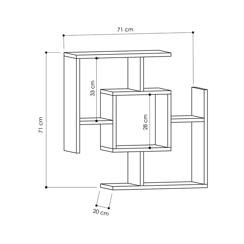 - Hyllykön mitat: leveys – 71 cm, korkeus – 71 cm, syvyys – 20 cm