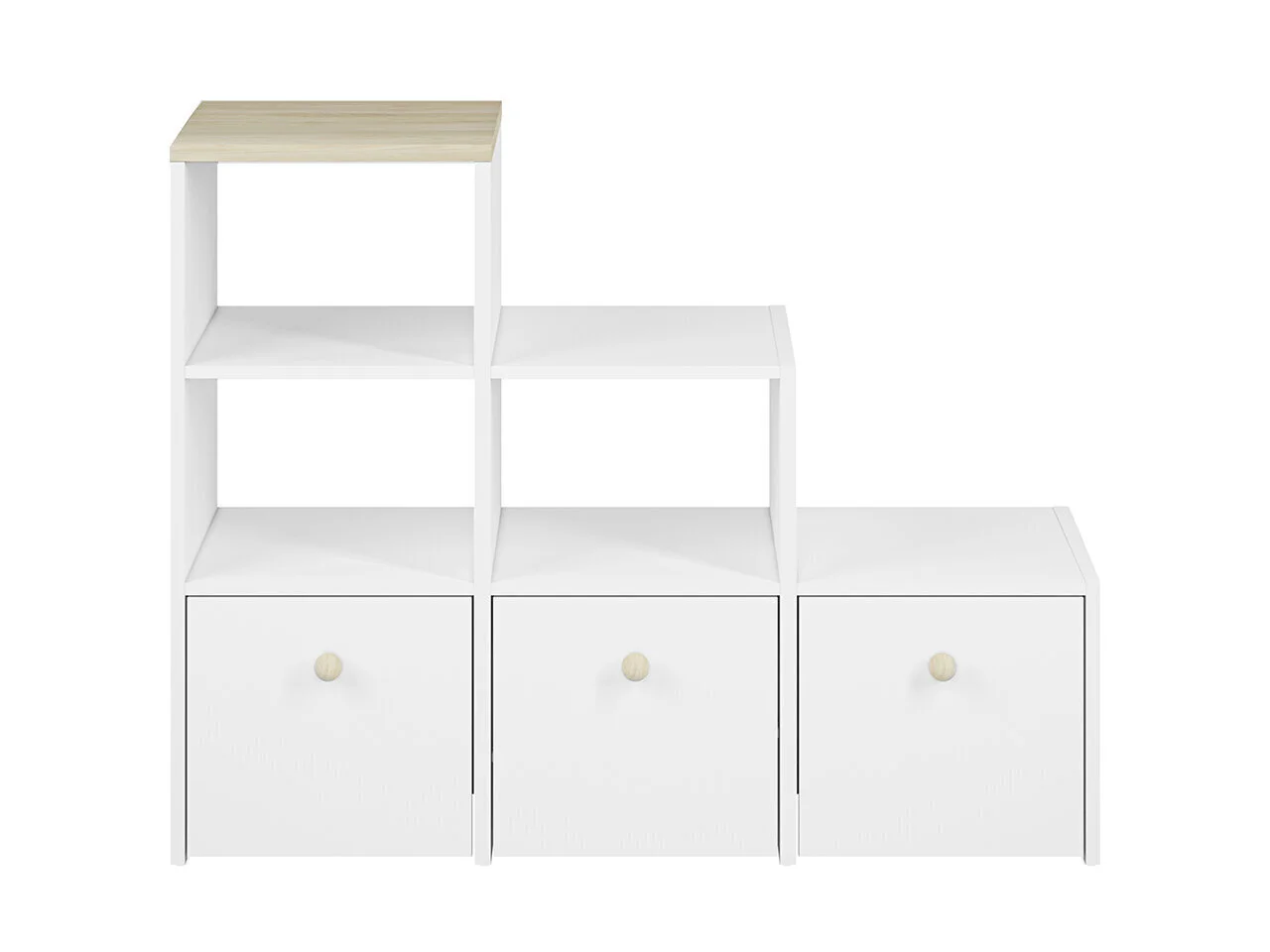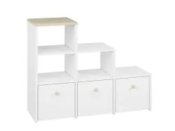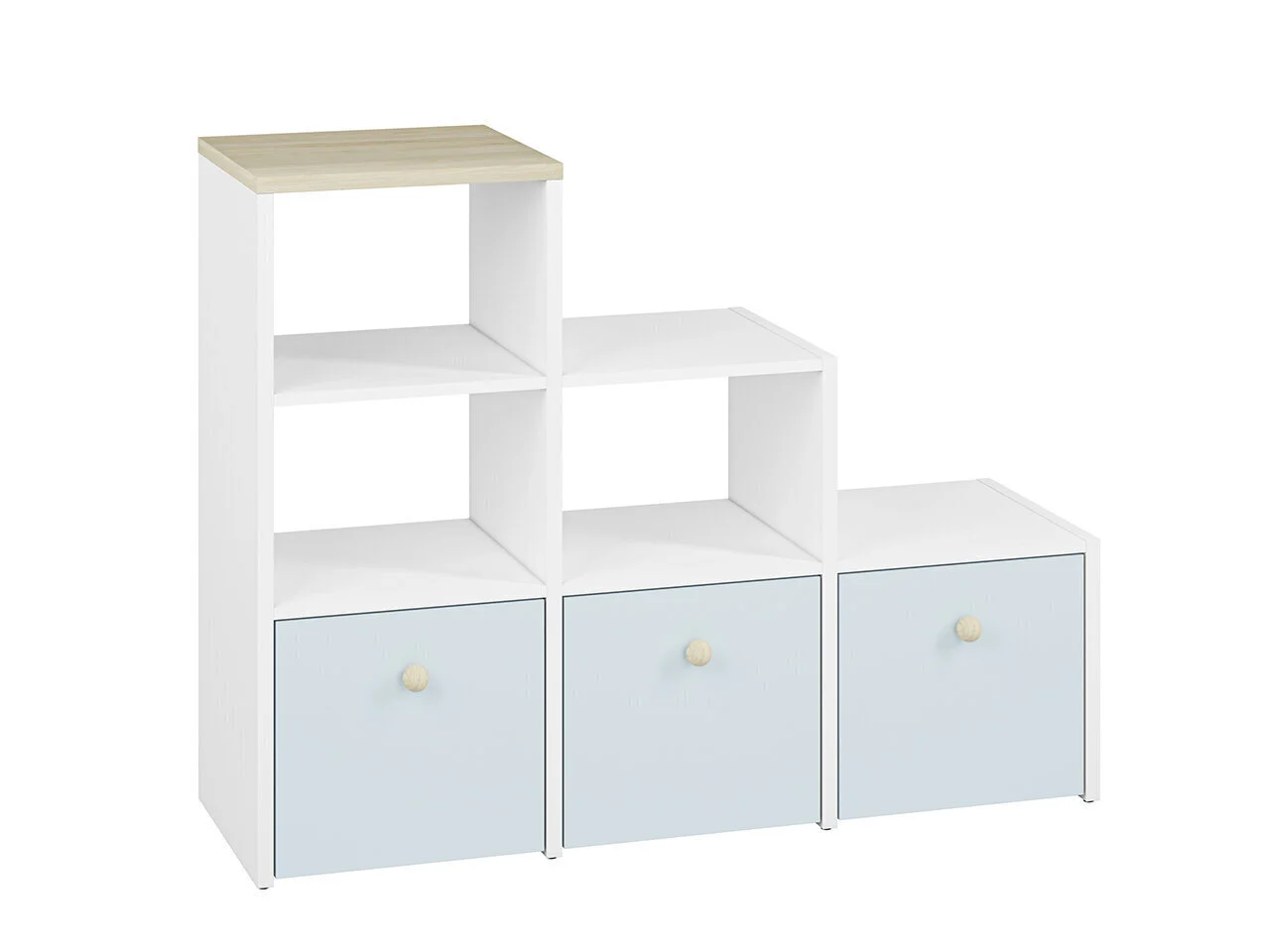 - erillinen hylly, jossa on kolme avointa lokeroa ja kolme laatikkoa;
