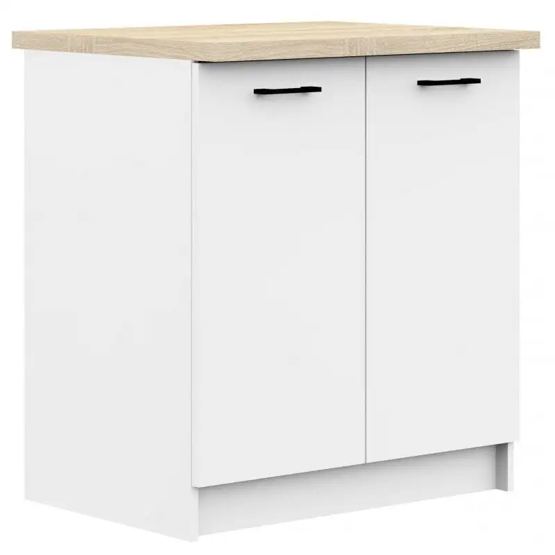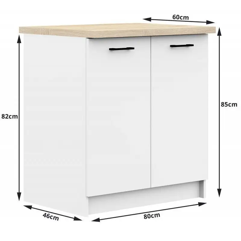 Kompaktit ja käytännölliset huonekalut on helppo nostaa ja siirtää. Joskus se voidaan koota, mikä vapauttaa vielä enemmän tilaa. Tästä syystä on mahdollista luoda minimalistinen ja ergonominen ympäristö, jossa on tilaa muille suunnitteluratkaisuille ja mukavalle käsittelylle. Toisin sanoen Keittiökaappi NORE Oliwia S80 2D, valkoinen sopii helposti luotavaan ympäristöön eikä häiritse viime hetken päätöksiä.
