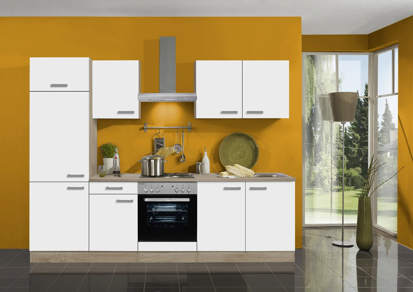 Levyn yläkerros peitetään usein erityisellä kalvolla, joka varmistaa huonekalun lujuuden. Viimeisimpien tuotantoteknologioiden avulla nämä laatat voivat olla kosteudenkestäviä, minkä vuoksi nämä materiaalit eroavat monipuolisuudestaan ja sopivat mihin tahansa huoneeseen. Keittiön kaappisarja Jaka Optikompakt Zamora, 270 cm, valkoinen/ruskea löytää varmasti paikan kodistasi!