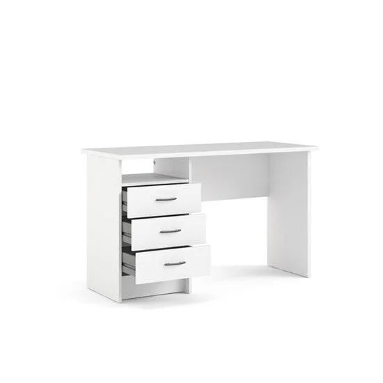 - Työpöytä, jossa on 1 avoin hylly ja 3 laatikkoa;