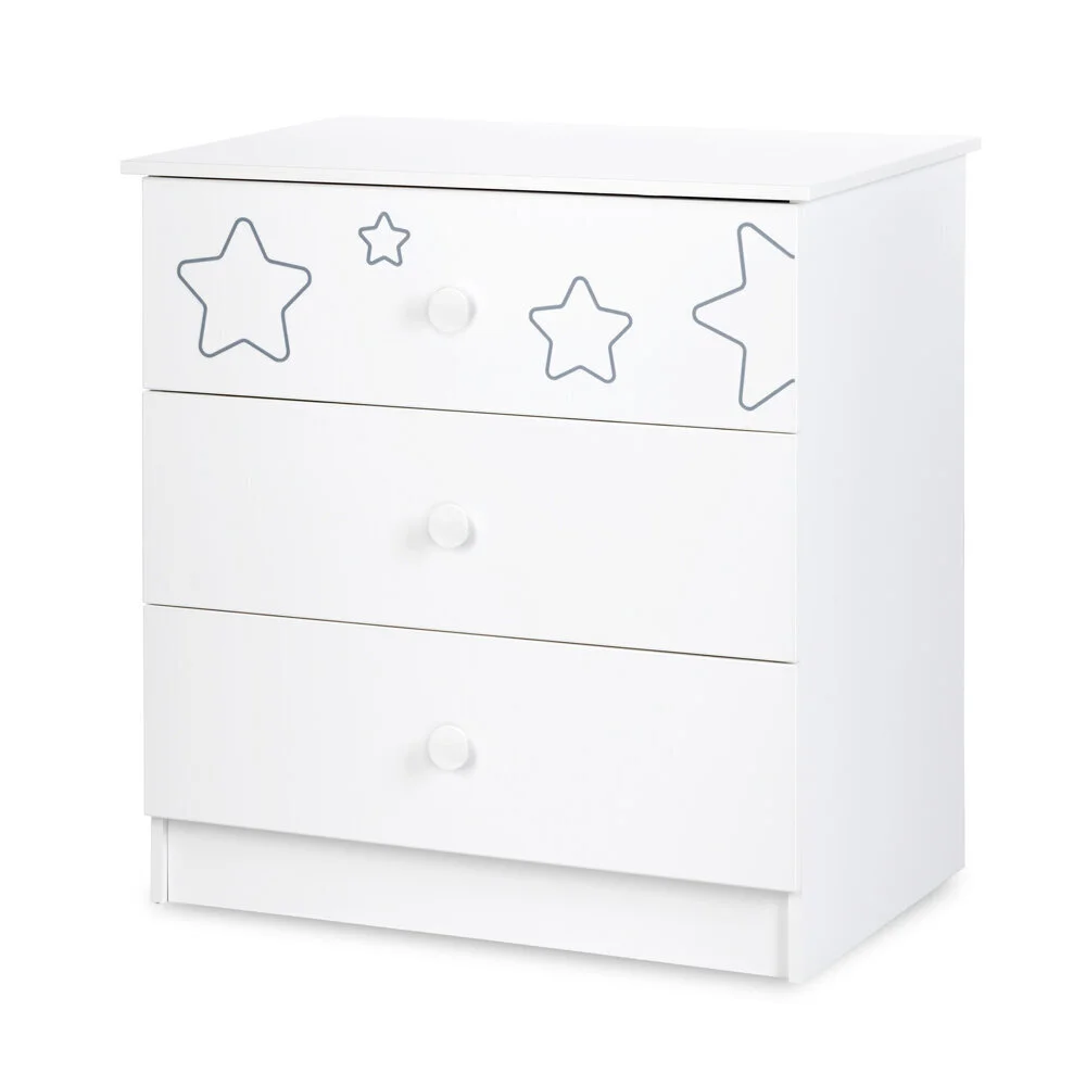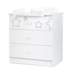 Levyn yläkerros peitetään usein erityisellä kalvolla, joka varmistaa huonekalun lujuuden. Viimeisimpien tuotantoteknologioiden avulla nämä laatat voivat olla kosteudenkestäviä, minkä vuoksi nämä materiaalit eroavat monipuolisuudestaan ja sopivat mihin tahansa huoneeseen. Lipasto hoitopöydällä Klupś Tino, valkoinen. löytää varmasti paikan kodistasi!