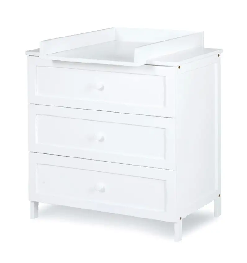 - Ajattoman muotoilunsa ansiosta valkoinen hoitopöytä / lipasto sulautuu helposti mihin tahansa vauvan- tai lastenhuoneeseen. Varustettu kolmella tilavalla vetolaatikolla sekä hoitopöydällä;