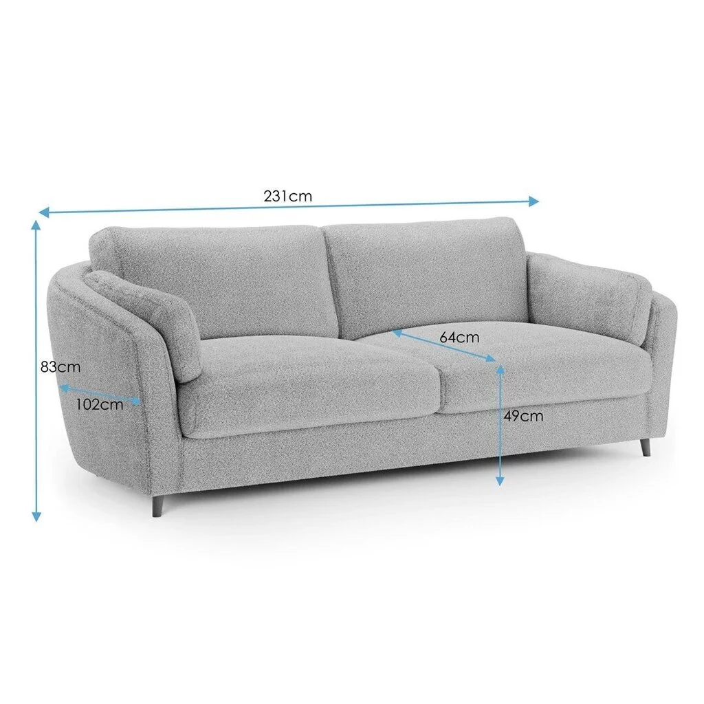 - .-Mitat: pituus 231 cm, korkeus 83 cm, syvyys 102 cm;