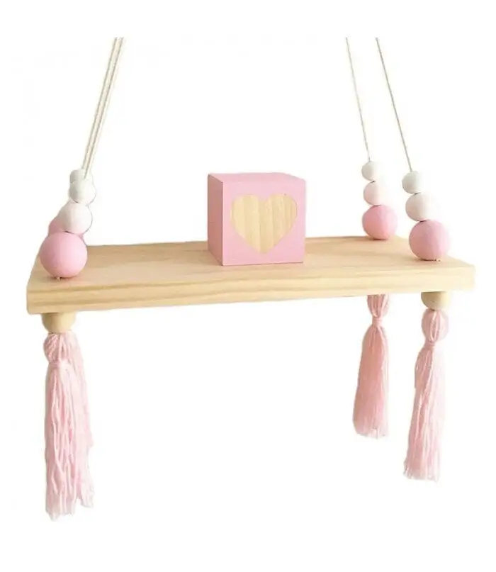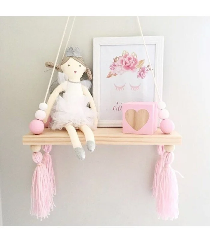 Koristeellinen seinähylly sopii ihanteellisesti tyttöjen huoneisiin. Lapsi voi laittaa pienet lelunsa, valokuvansa tai ilmaisinyksityisensä sille ja sisustaa huoneensa. Vaaleanpunaisilla kuplilla ja tupsuilla varustettu hylly tuo lapselle iloa ja viihtyisyyttä jokaiseen huoneeseen.