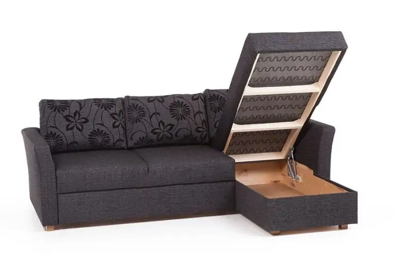 Yksi tämän huonekalun ilmeisimmistä eduista on tilansäästö: niin kauan kuin huonekaluja ei pureta, se vie huomattavasti vähemmän tilaa. Tästä syystä tällä toiminnolla varustetut huonekalut valitsevat useimmiten ne, joiden on laskettava huolellisesti jokainen vapaa tuuma. Kulmasohva Sindy, vasen kulma, , musta kangas Inari 100 sopii erinomaisesti myös suurempiin tiloihin: joten siellä on enemmän tilaa muille yksityiskohdille. Useimmissa tämän tyyppisissä huonekaluissa on liinavaatelaatikko sisällä – näin tavaroiden säilytysongelma ratkeaa taas.