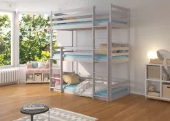 ADRK Furniture Tedro -3-kerrossänky Lapsille, 210 X 97 X 208 Cm, Harmaa