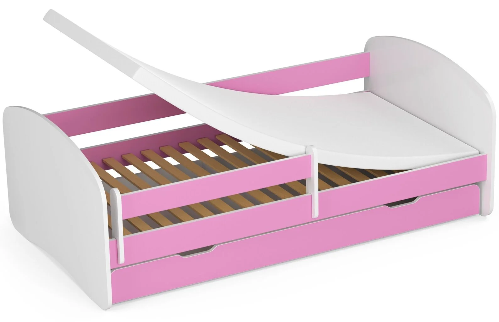 Levyn yläkerros peitetään usein erityisellä kalvolla, joka varmistaa huonekalun lujuuden. Viimeisimpien tuotantoteknologioiden avulla nämä laatat voivat olla kosteudenkestäviä, minkä vuoksi nämä materiaalit eroavat monipuolisuudestaan ja sopivat mihin tahansa huoneeseen. Lastensänky NORE Smile, 180×90 cm, valkoinen/pinkki löytää varmasti paikan kodistasi!
