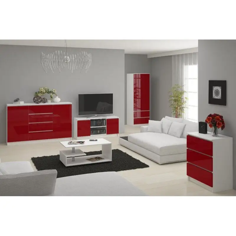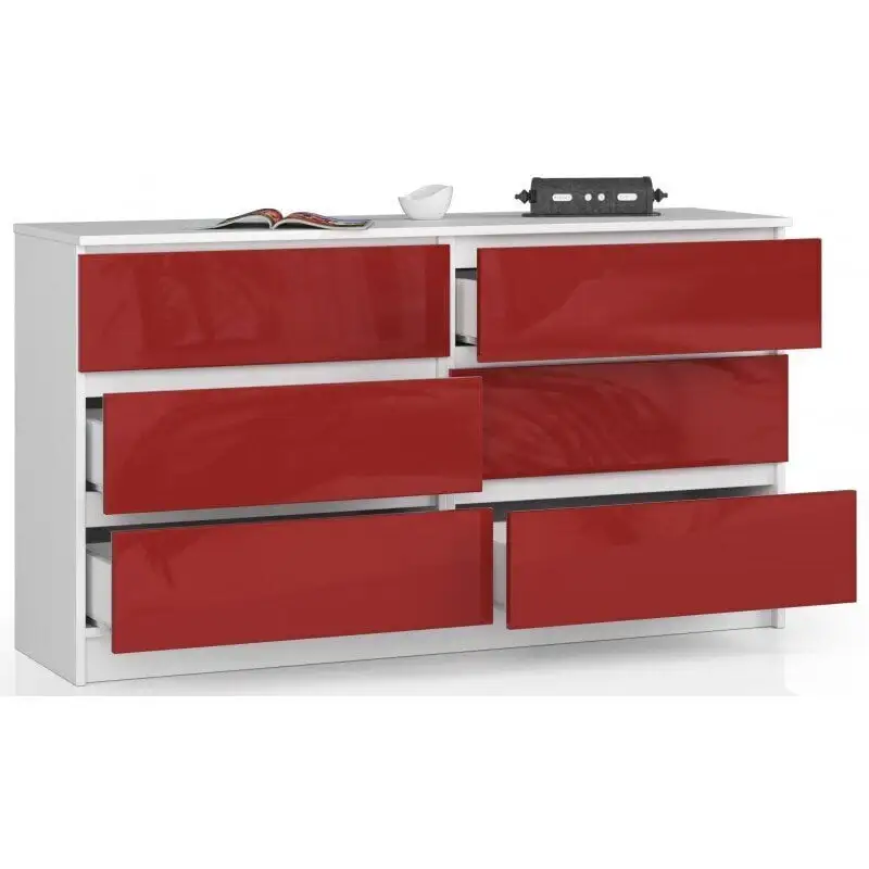 Levyn yläkerros peitetään usein erityisellä kalvolla, joka varmistaa huonekalun lujuuden. Viimeisimpien tuotantoteknologioiden avulla nämä laatat voivat olla kosteudenkestäviä, minkä vuoksi nämä materiaalit eroavat monipuolisuudestaan ja sopivat mihin tahansa huoneeseen. Lipasto NORE K140, 6 laatikkoa, valkoinen/punainen löytää varmasti paikan kodistasi!