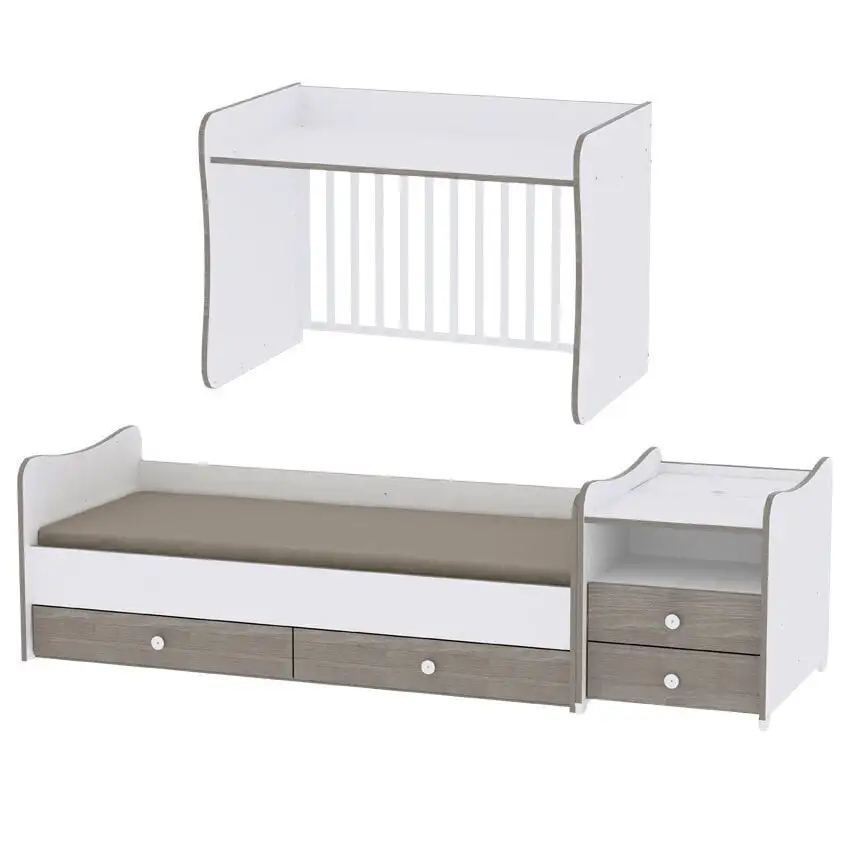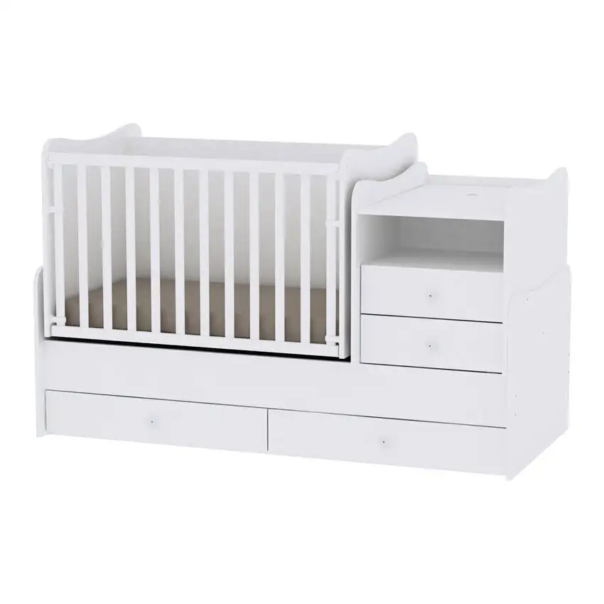 Levyn yläkerros peitetään usein erityisellä kalvolla, joka varmistaa huonekalun lujuuden. Viimeisimpien tuotantoteknologioiden avulla nämä laatat voivat olla kosteudenkestäviä, minkä vuoksi nämä materiaalit eroavat monipuolisuudestaan ja sopivat mihin tahansa huoneeseen. Lorelli Combo lapsen mukana kasvava sänky ja laatikosto, 110 x 62, valkoinen löytää varmasti paikan kodistasi!