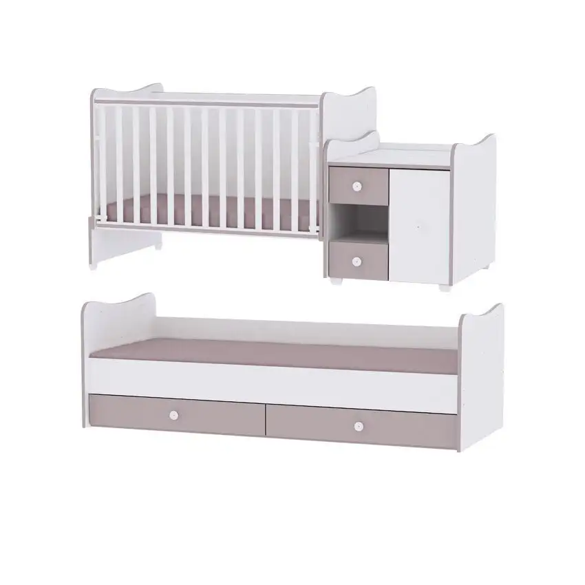 Levyn yläkerros peitetään usein erityisellä kalvolla, joka varmistaa huonekalun lujuuden. Viimeisimpien tuotantoteknologioiden avulla nämä laatat voivat olla kosteudenkestäviä, minkä vuoksi nämä materiaalit eroavat monipuolisuudestaan ja sopivat mihin tahansa huoneeseen. Lorelli Mini Max New lapsen mukana kasvava sänky ja laatikosto, 120 x 60, valkoinen löytää varmasti paikan kodistasi!
