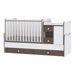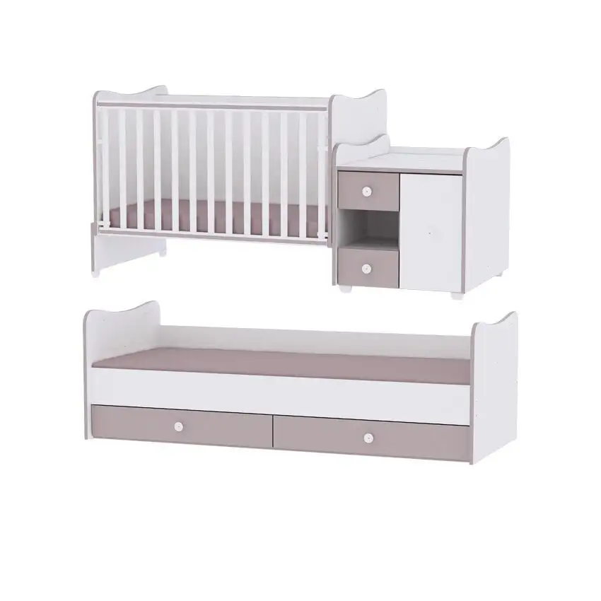 Levyn yläkerros peitetään usein erityisellä kalvolla, joka varmistaa huonekalun lujuuden. Viimeisimpien tuotantoteknologioiden avulla nämä laatat voivat olla kosteudenkestäviä, minkä vuoksi nämä materiaalit eroavat monipuolisuudestaan ja sopivat mihin tahansa huoneeseen. Lorelli Mini Max New lapsen mukana kasvava sänky ja laatikosto, 120 x 60, valkoinen / tummanruskea löytää varmasti paikan kodistasi!