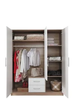- Alhaalla on 3 laatikkoa ja yläpuolella oven takana on 3 hyllyä.
