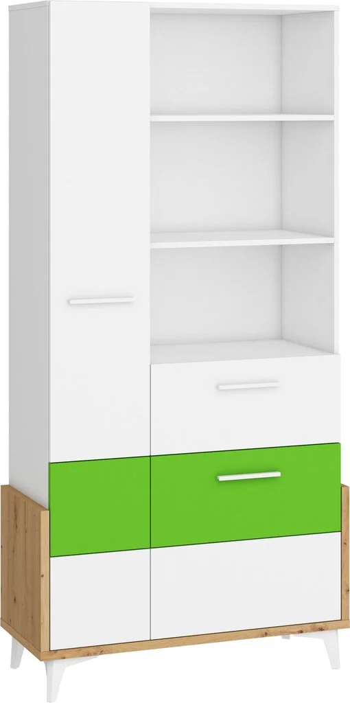 Levyn yläkerros peitetään usein erityisellä kalvolla, joka varmistaa huonekalun lujuuden. Viimeisimpien tuotantoteknologioiden avulla nämä laatat voivat olla kosteudenkestäviä, minkä vuoksi nämä materiaalit eroavat monipuolisuudestaan ja sopivat mihin tahansa huoneeseen. Meblocross Hey 18, Hyllykkö, valkoinen/vihreä löytää varmasti paikan kodistasi!