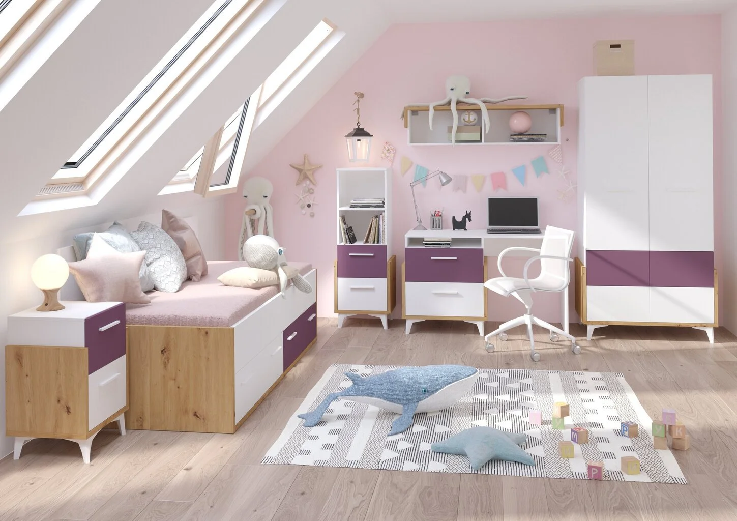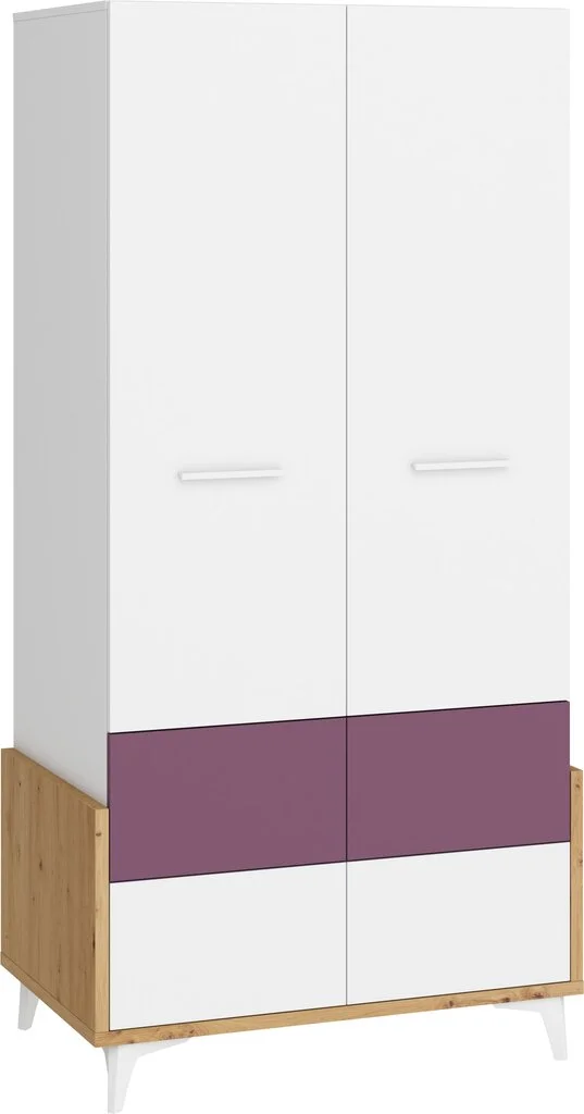 Levyn yläkerros peitetään usein erityisellä kalvolla, joka varmistaa huonekalun lujuuden. Viimeisimpien tuotantoteknologioiden avulla nämä laatat voivat olla kosteudenkestäviä, minkä vuoksi nämä materiaalit eroavat monipuolisuudestaan ja sopivat mihin tahansa huoneeseen. Meblocross Hey 20 Vaatekaappi, valkoinen/liila löytää varmasti paikan kodistasi!