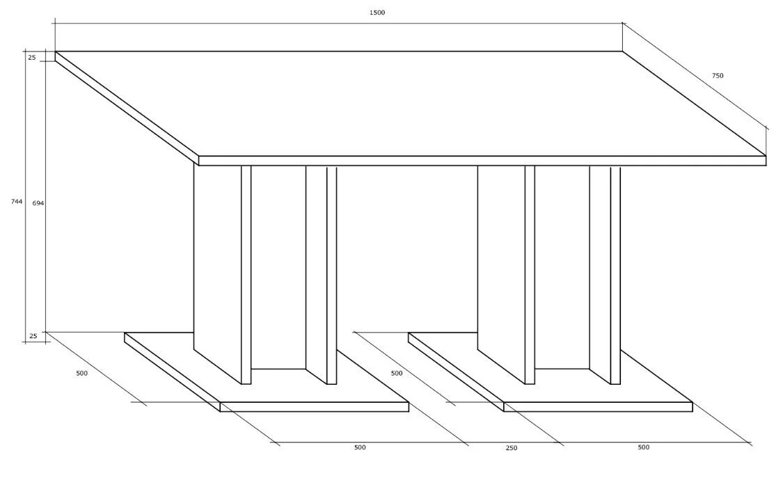 - Mitat: leveys – 75 cm, pituus – 150 cm, korkeus – 75 cm;