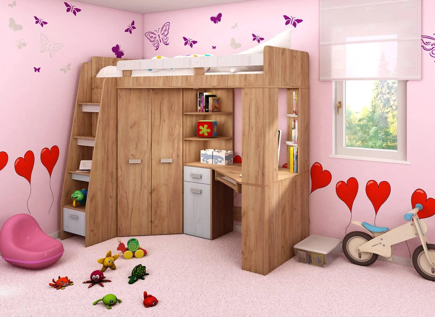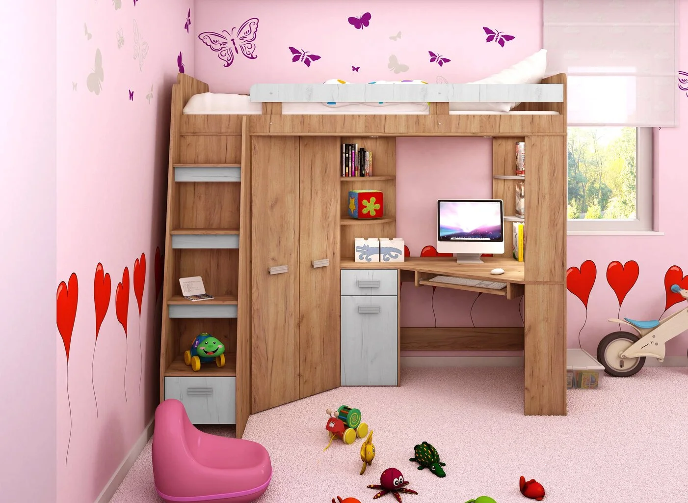 Toimiva lastenhuoneen kalustesarja, jossa on eksklusiivinen muotoilu – auttaa säästämään tilaa kotona ja varastoimaan tavarat oikeisiin paikkoihin.