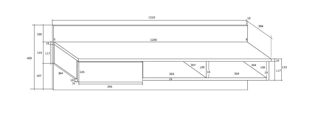 - Mitat: pituus 121 cm, syvyys 40 cm, korkeus 40 cm;.