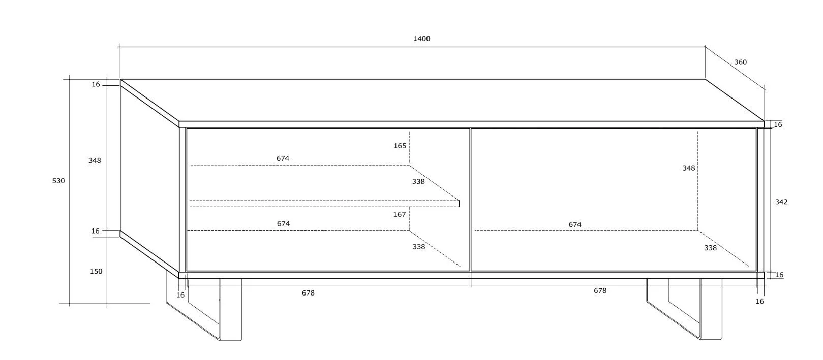 - Mitat: syvyys -36 cm, leveys -140 cm, korkeus -53 cm.