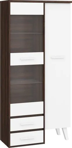 Nordis 1D2S -vitriinikaappi, 90 x 42 x 191 cm, tummanruskea / valkoinen