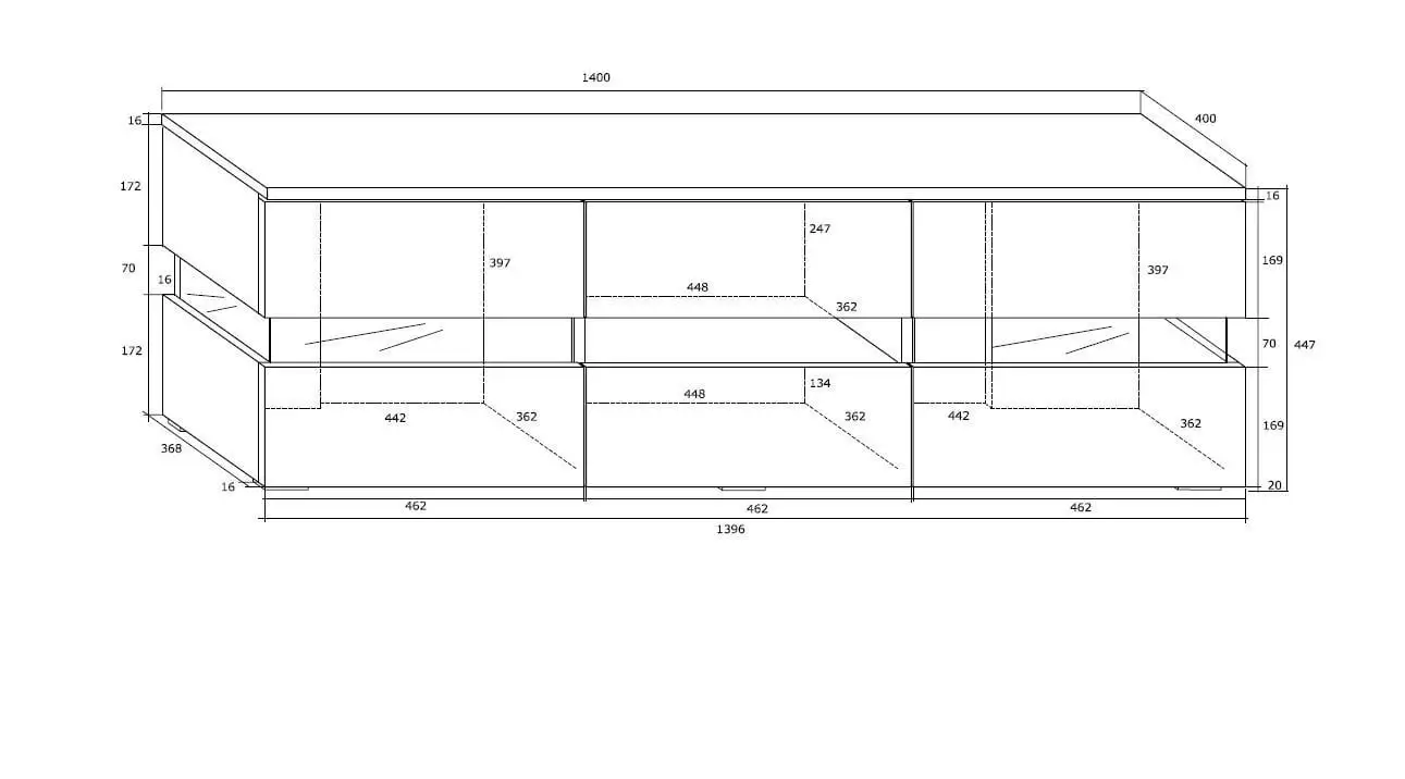 - Mitat: pituus – 140 cm, leveys – 39 cm, korkeus – 45 cm.