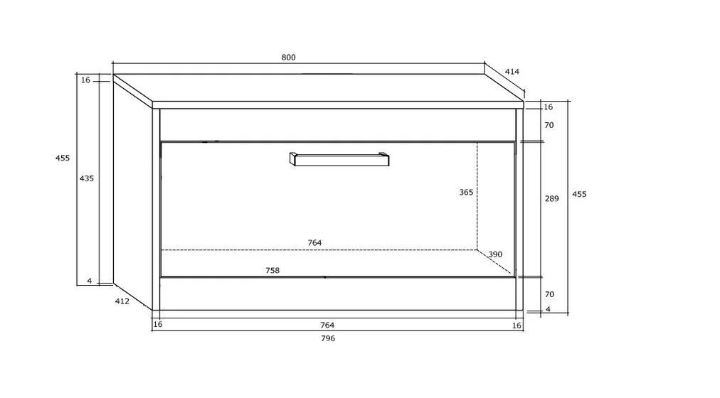 -Mitat: syvyys – 42 cm, leveys – 80 cm, korkeus – 46 cm.