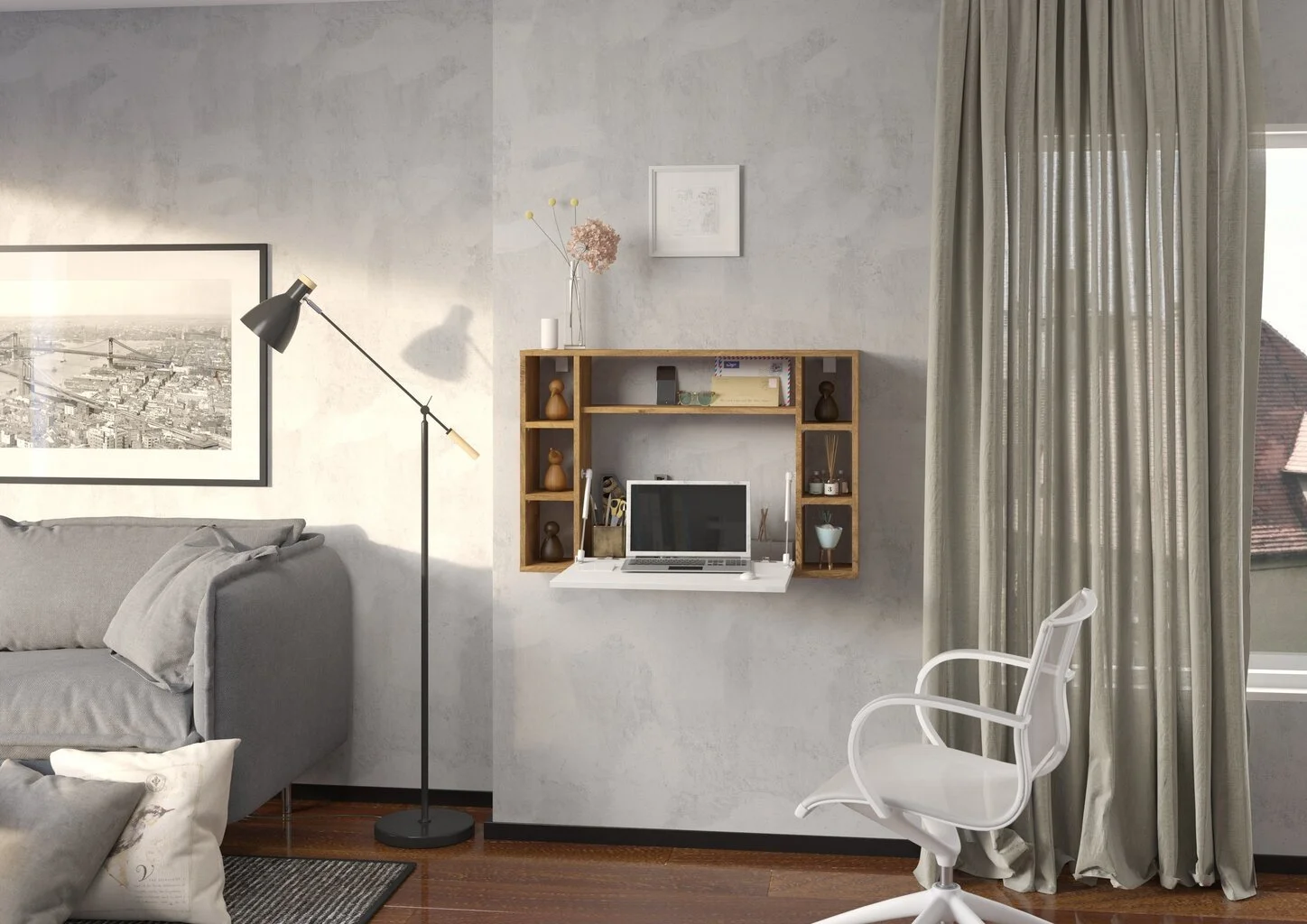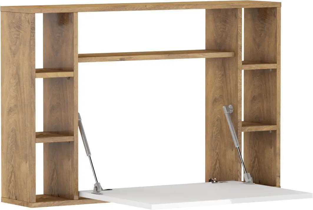 Mukava ja käytännöllinen seinähylly – tietokonepöytä, joka vie vähän tilaa toimistossa, olohuoneessa, työhuoneessa tai nuorten huoneessa. Kun työpöytä on koottu, siitä tulee kompakti kirjahylly, jossa on seitsemän hyllyä pienille tavaroille. Moderni minimalistinen muotoilu sopii helposti mihin tahansa sisustukseen.
